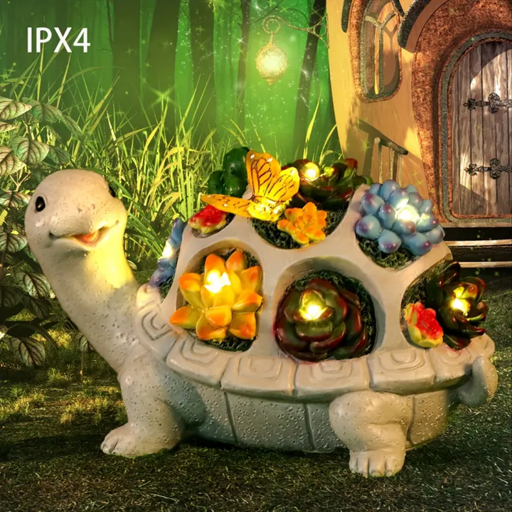 Combine nature and art with this garden turtle lamp featuring a stained-glass shell adorned with succulents. A calming and creative accent for your space.